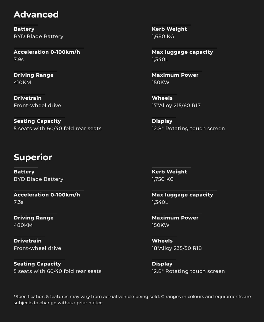 Akselerasinya yang responsif (0-100 km/jam dalam 7,3 detik) membuat berkendara di kota menjadi menyenangkan, sementara jarak tempuh hingga 480 km memberikan kebebasan untuk berpetualang. Fitur keselamatan ADAS yang komprehensif dan rating bintang lima dari ASEAN NCAP memberikan ketenangan pikiran. Atto 3 adalah paket lengkap: gaya, performa, keamanan, dan efisiensi.